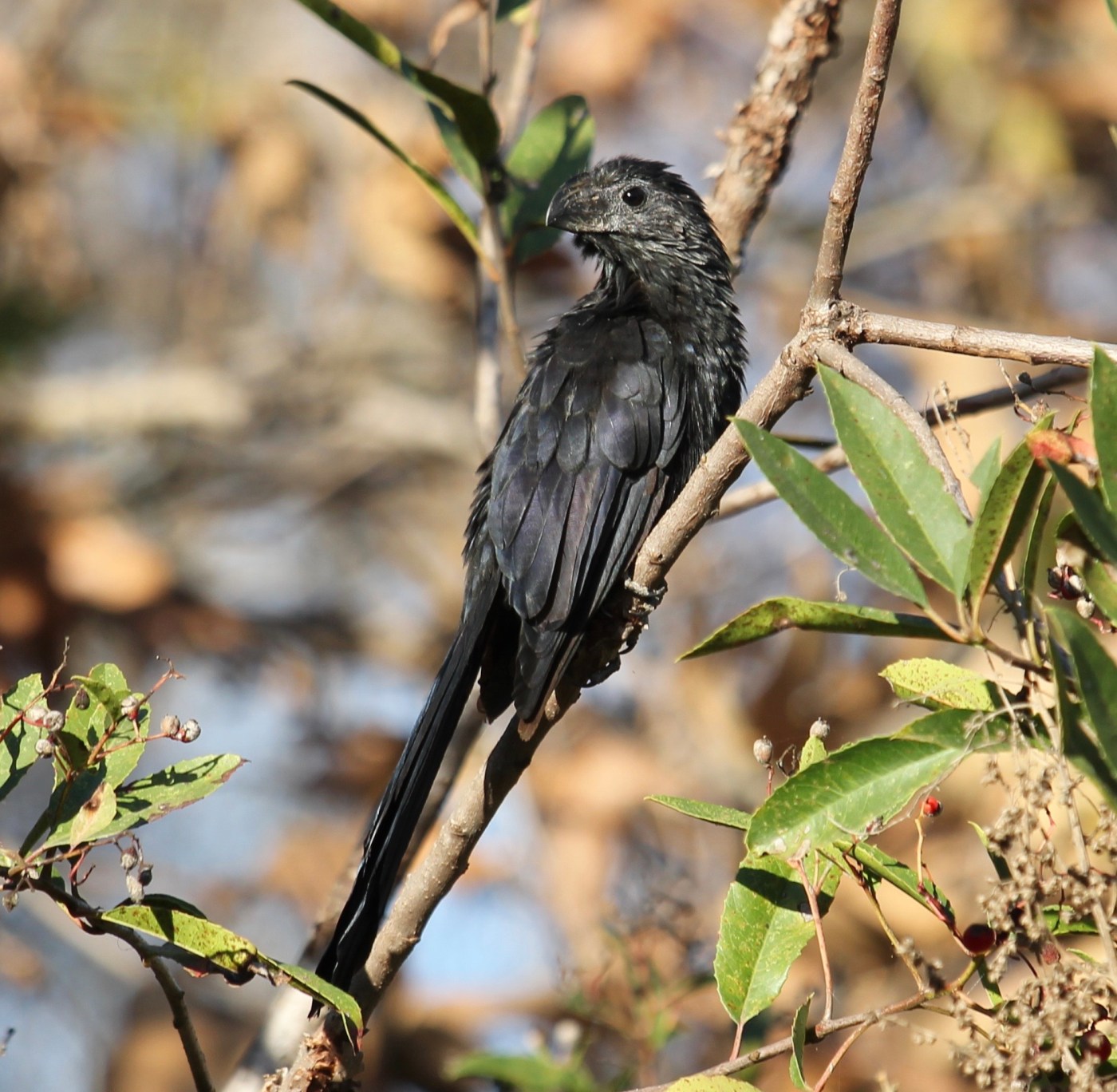 That bill! Those eyelashes! Those iridescent glossy-edged feathers! I was immediately enamored. Groove-billed Anis are prehistoric-looking, disheveled birds with an awkwardly large, curved bill with visible grooves. These unusual cuckoos are resident