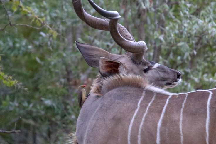 Well, this interaction certainly seems to be more complicated than originally thought. Similar to the cleaner fish of coral reefs, the system consists of a “guest” cleaning or grooming a larger host “client”. But how does the client fare? In one study, the parasite load of cattle was NOT reduced in an experiment that excluded Red-billed Oxpeckers from enclosures. Other studies have documented that RBOX spend 85% of their foraging time feeding on blood, not removing ticks. Excluding oxpeckers also resulted in fewer wounds and much faster wound healing time. On the other hand, in the same study, excluding oxpeckers caused a marked increase in earwax levels! But still, more of a foe than a friend, it seems. Perhaps an Oxpecker symbiont does come in handy in environments with heavier parasite loads? It is also quite possible that the nature of this relationship varies from host to host – briefly and anecdotally, I noted wounds or open sores on giraffes in Kruger, but I did not observe any on impala. Some authors suggest they are parasitic on hippos, commensalists on impala, and mutualists on rhinos. It is now quite clear that mutualisms are not always the perfect happy-happy relationship that they are often reported to be, but rather lie on a continuum that is influenced by many other ecological factors and this appears to be true for oxpeckers and their hosts! Regardless, it was fascinating to have the opportunity to observe these interactions, between oxpeckers and a variety of hosts, in the wild!