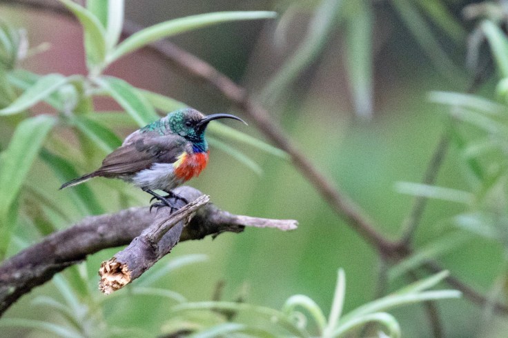This was followed by some more fantastic birds as we drove through the Sani Valley – great looks at a feisty Red-necked Francolin, some actively nectaring Greater Double-collared Sunbirds, a cooperative Long-crested Eagle, an Olive Woodpecker, and my first look at a Greater Honeyguide.