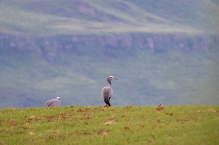 We made our way back down the Sani Pass, stopping for birds on the way down – Drakensberg Siskin, Bush Blackcap, Fan-tailed Grassbird, to name a few. We ended the day, and thus our trip, with a final drive on the winding roads that surround the quaint village of Himeville, scanning for a few target birds in the surrounding grasslands. We stopped for a roost of White-breasted Cormorants and admired some more Grey Crowned Cranes. Before heading back for our final night at our lodge, we spotted the very last new bird of the trip – the Blue Crane. I could not imagine a more apropos species with which to end our trip….this strikingly elegant bird is endemic to Southern Africa and is the National Bird of South Africa.