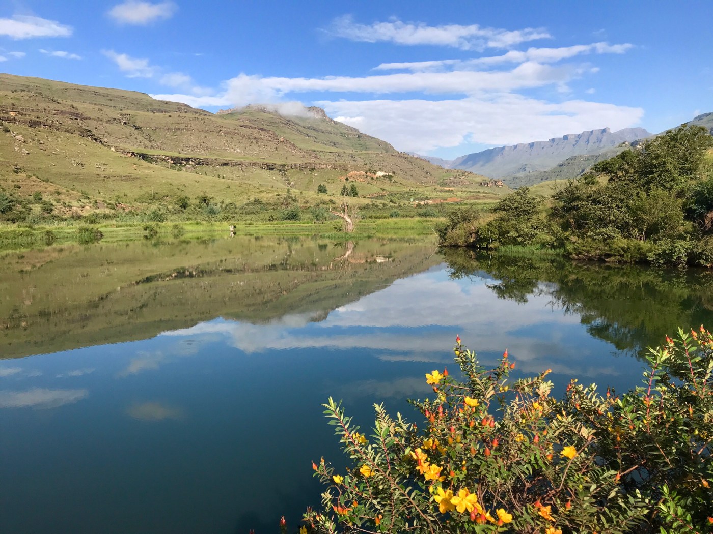 Our very last adventure was my favorite on the entire trip. Our final destination was the dramatic Drakensberg Mountains and the “Mountain Kingdom of the Sky“, the tiny country of Lesotho. The Drakensbergs loomed in the background for a few days leading up to this trip, so we approached this journey with great anticipation! The Drakensberg, or “Mountain of the Dragons” is the eastern portion of the Great Escarpment, which encloses the central South African plateau. The escarpment stretches for over 600 miles and is 11,424′ tall and its highest peak.