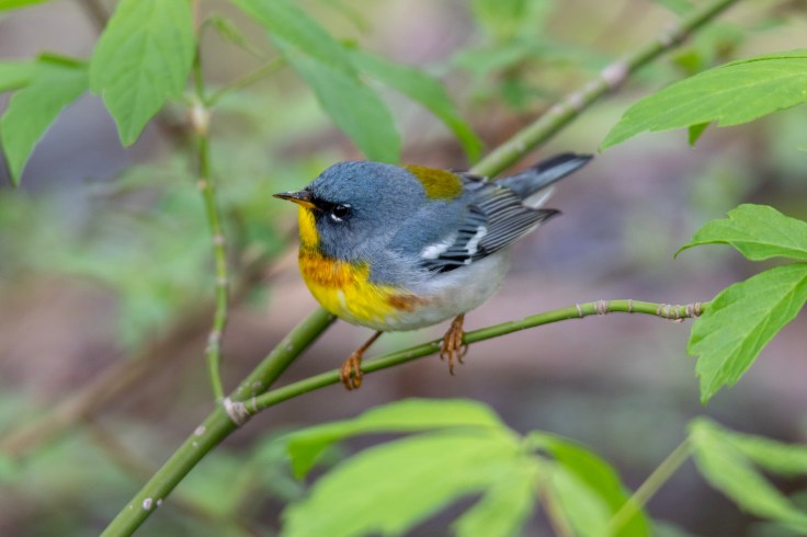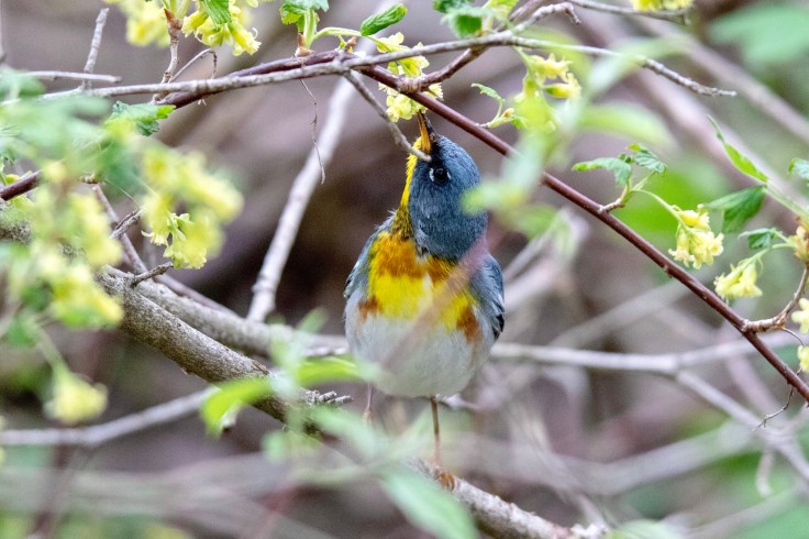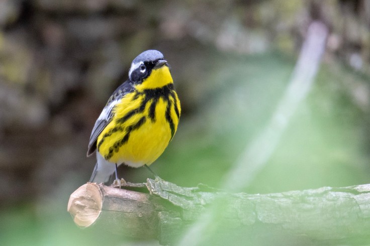Magnolia Warbler….I mean, really?!? Someone on instagram (I can’t remember who??) recently described this bird as a “fancy cupcake of the forest”, and I can think of no better description. This yellow-throated, yellow-chested small warbler sports a fancy black necklace with black stripes down its sides. This dainty, brilliantly colored warbler is nice and easy to observe as it tends to forage in the deciduous shrubs or low trees. Magnolia Warblers are gleaners, and forage for insects and spiders among conifer needles and broadleaf foliage.