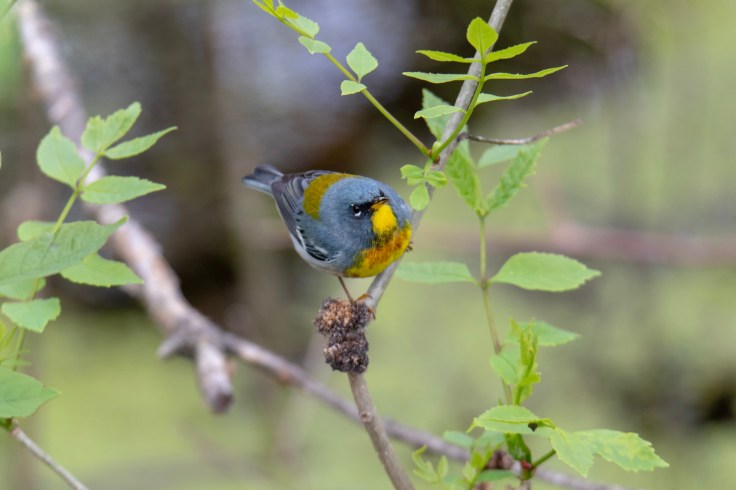 Of the 27 species of warbler, there are just a few more that were cooperative enough to allow me to photograph them. Thankfully, this Northern Parula was among the cooperative ones! This small warbler is notorious for inflicting “warbler neck” on birders hoping to catch a glance, as it gleans insects in the upper canopy. In fact, as I right this, I have been camping in the Ozarks in Arkansas where the Northern Parulas have been singing nonstop from high in the trees all week, but I barely caught a glimpse of them! Not the case at the Magical Magee! Like me, this Northern Parula prefers forests that are laden with mosses and lichens – they hide their nests inside hanging Spanish moss, in the South, or Usnea lichen in the North. How cute is that?!