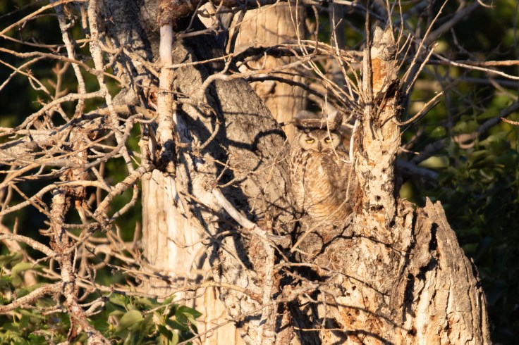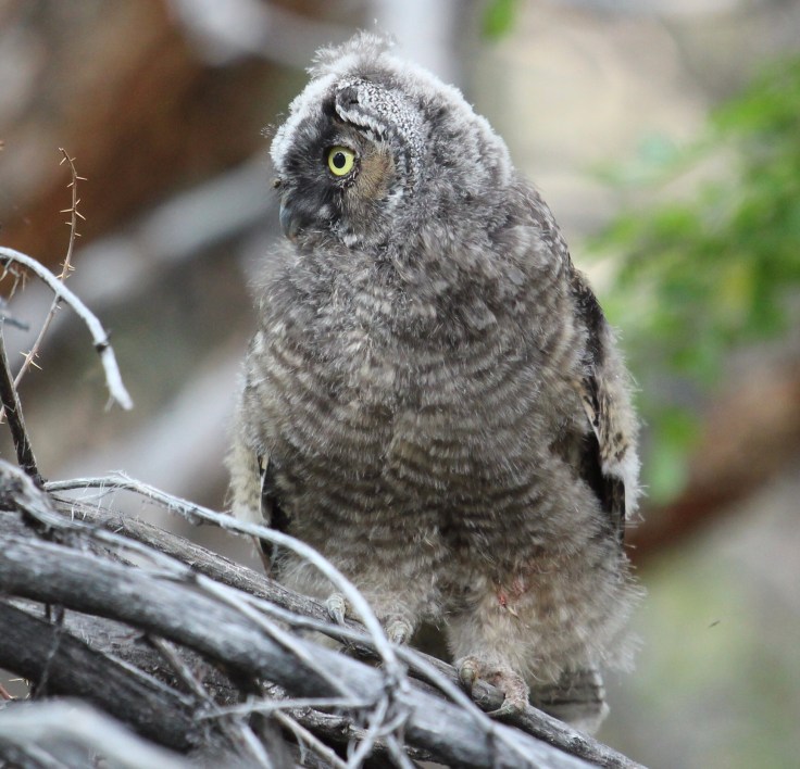 Around this same time last year, I visited Wildrose Canyon and had one of my more memorable birding experiences and so I was sure to revisit this spot again, as soon as my birding friends departed. Wildrose Canyon is in the Glass Mountains, east of Mammoth Lakes, off of Benton Crossing Road, en route to Benton. The slopes of this canyon are covered with Pinyon Pines and a creek bed running through the canyon is surrounded by an aspen grove and willow stands. Last year, we went in search of a reported Broad-tailed Hummingbird. We missed out on that bird, but I did see my lifer Calliope Hummingbird nectaring on some giant red paintbrush and nabbed some photos of a lifer Plumbeous Vireo. As we were wrapping up our visit, I wandered back toward the grove and scanned the canopy for the singer of a warbler spong. I must have had the sense I was being watched, as I dropped my binoculars and stared straight into the eyes of a juvenile Long-eared Owl perched on a pile of brush no more than 10 feet in front of me. Without taking a step, I snapped a few photos that coarsely whispered to my friends within earshot, “You guys….there is an owl…RIGHT IN FRONT OF ME!”. It remains one of my more spectacular encounters.